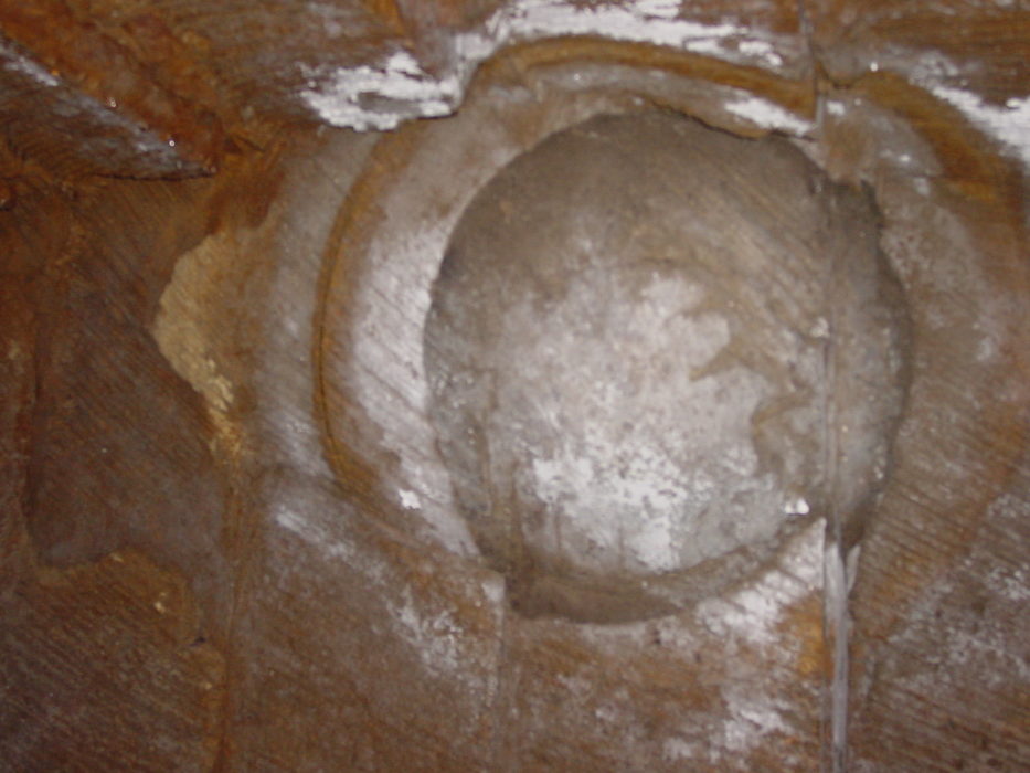 ここまで来て,入り口からずっと続いていた天上と壁の規則正しい模様の意味がよく分かった。この模様は,珪藻土を約50センチで粗彫りしていくときにできる,壁一面分の区切りなのである。約50センチの深さにノミを入れるのだが,そのとき,周りを5センチくらい残して入れ,やや外側に(天上の場合はやや上に)終点が来るようにしているのだ。だから,同じ模様がずっと続いているというわけだ。成る程。