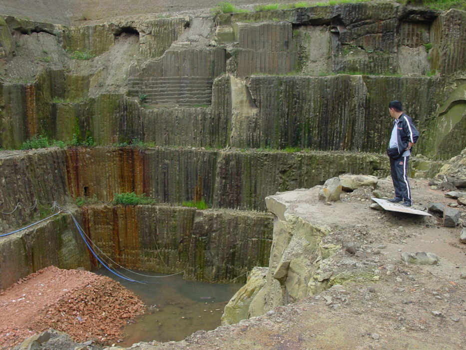 商売としては安全管理や採石量に大きく影響する為、あまりありがたい穴ではありませんが、昔どのように掘っていたかを見るには格好の断面かもしれません。