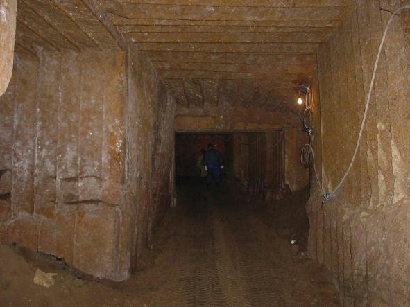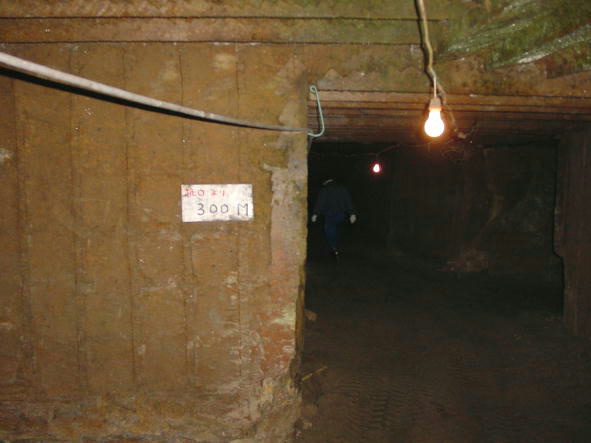 粗掘りのトンネルは,途中で数カ所,分岐する場所もあった。質のいい珪藻土を求めて掘り進めているのだという。