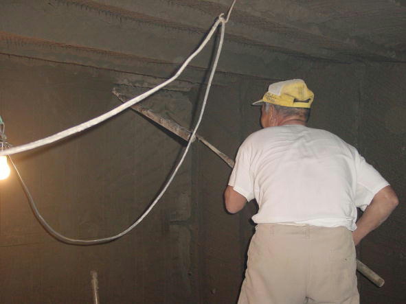 突き当たりの壁を,手掘しているおじさんがいる。切り出し職人の下さんだ。