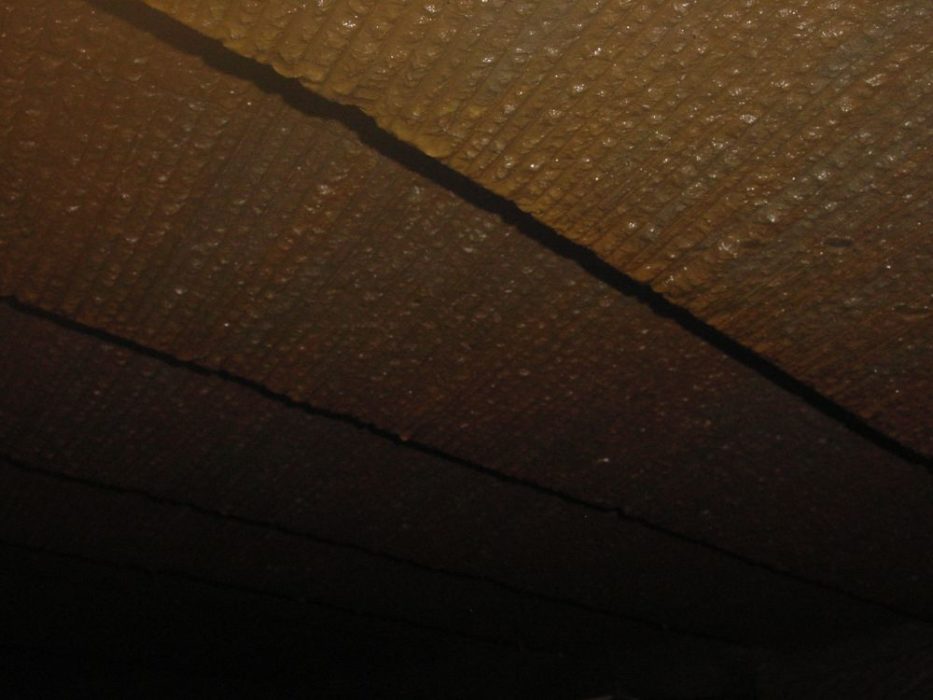 さて,この場所のむき出しの壁をよく見ると,切り出しコンロのトンネルにあったのと同じような模様があるのに気がつく。そう,おそらくここも,以前は他の珪藻土工場と同じように手彫りをしながら四角い固まりを掘り出していたのではないか。それが,何かの原因で,露天掘りをするようになったのではないかと推察されるのである。鍵主さんに聞いてみれば分かることだけど…。