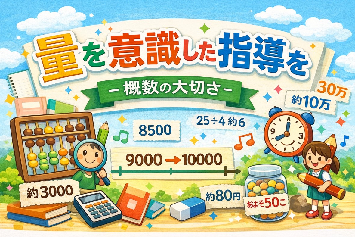 僕は〈量を無視した立式〉主義,〈式を立てたら即計算〉主義と〈概数を上手に使えない〉ということが,これらの原因の重要なひとつだと思っている。別の言い方をすれば〈抽象化された数〉と〈現実の量〉との橋渡しがうまくできていないとも言えるのではないだろうか。