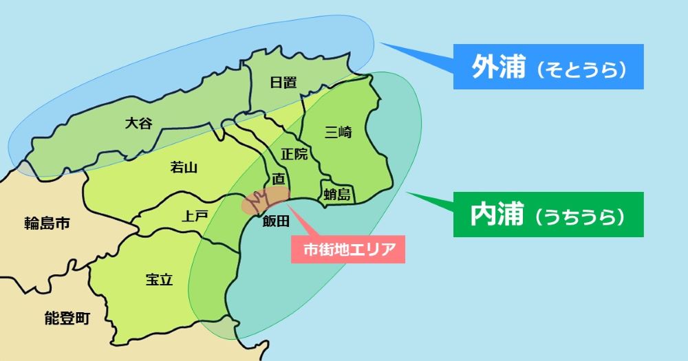 宝立地区からずっと海岸線の道路を走ってきましたが,ここまでは,おおむね右側に砂浜が広がっている海が見え隠れしていたはずです。このあたりを地元では「内浦(うちうら)」と呼んでいます。