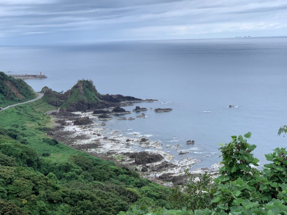 寺家漁港を境に,道路は海より高いところを走ることが多くなります。