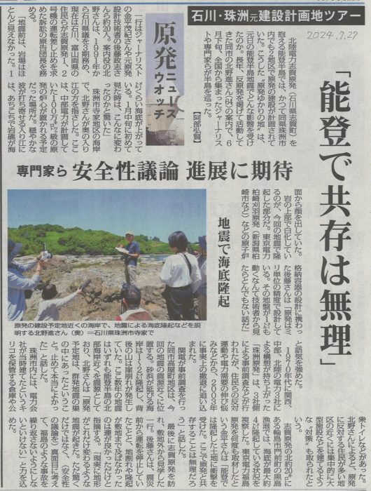 なお,今回わたしが紹介している珠洲原発関連のルートは,下の新聞記事(元石川県議会議員・北野進さんの案内)も参考にしています。