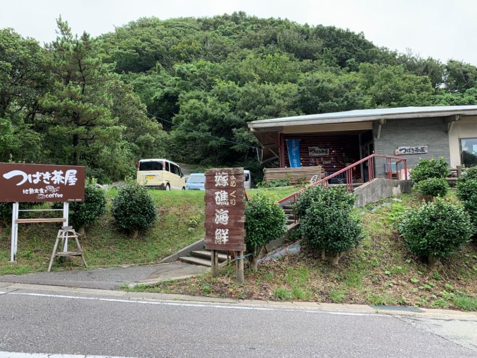 海岸から坂道を上がり本線に戻って少し進むと,峠のてっぺんに駐車場(ツバキ展望台)があります。sこに車を止めて,海の方を見てみてみると,隆起した白い部分がよく見えます。道をはさんで,つばき茶屋という地元の海女親子が経営している食堂もあります。能登の味が味わえます。お薦めです。犬の同伴可です。
